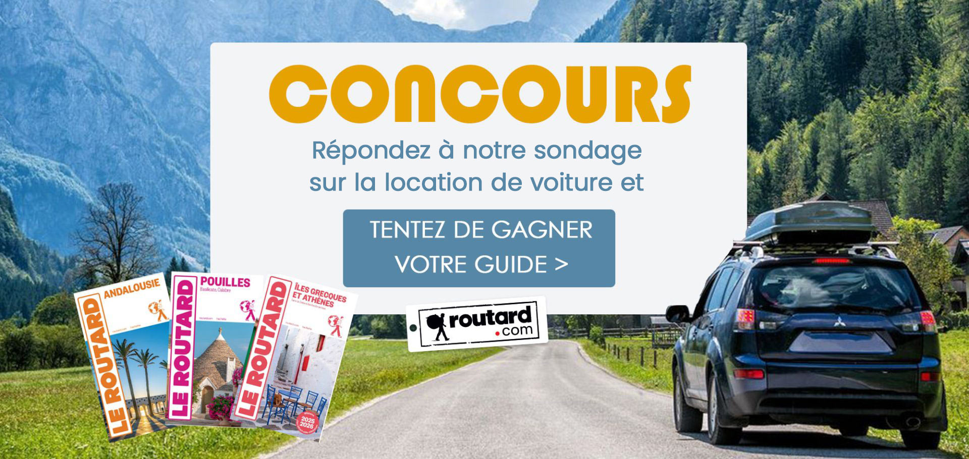 Nous lançons aujourd'hui un sondage pour mieux comprendre vos habitudes concernant la location de voiture en voyage. Ce questionnaire s’adresse à tous les voyageurs. Un petit coup de pouce pour vos vacances : nous tirerons au sort 5 personnes parmi les participants au sondage ! Ces derniers recevront un Guide du Routard® de la destination de leur choix (voir le règlement). Le questionnaire devrait vous prendre 5 minutes environ. Merci beaucoup pour votre temps.
